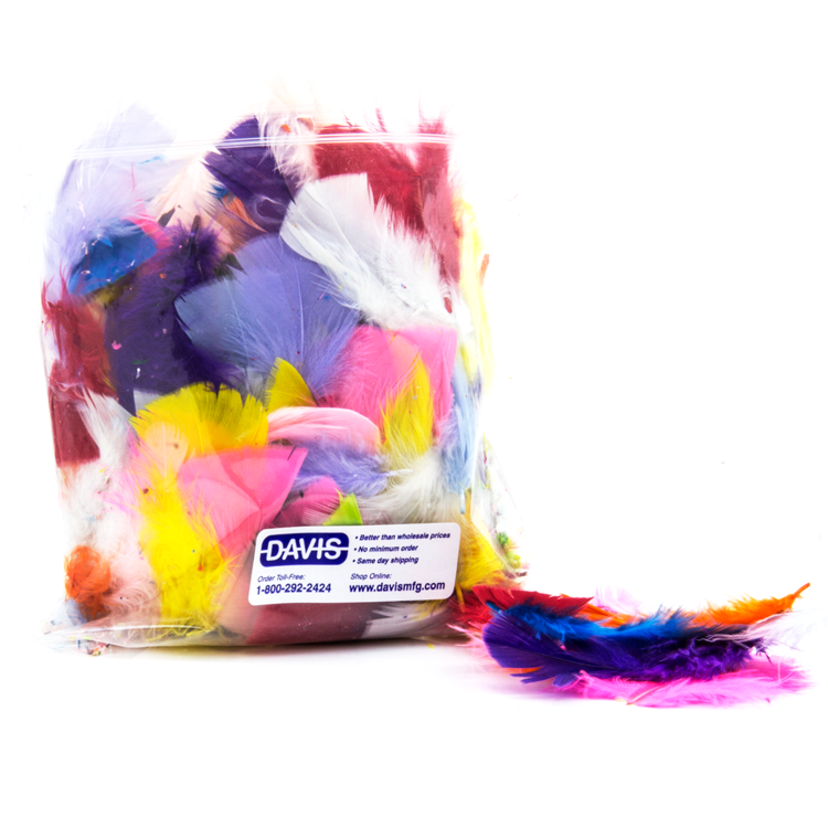 Contains more than 150 colorful and assorted feathers. Size is 8×6 inches and assortment will vary in color and style.
